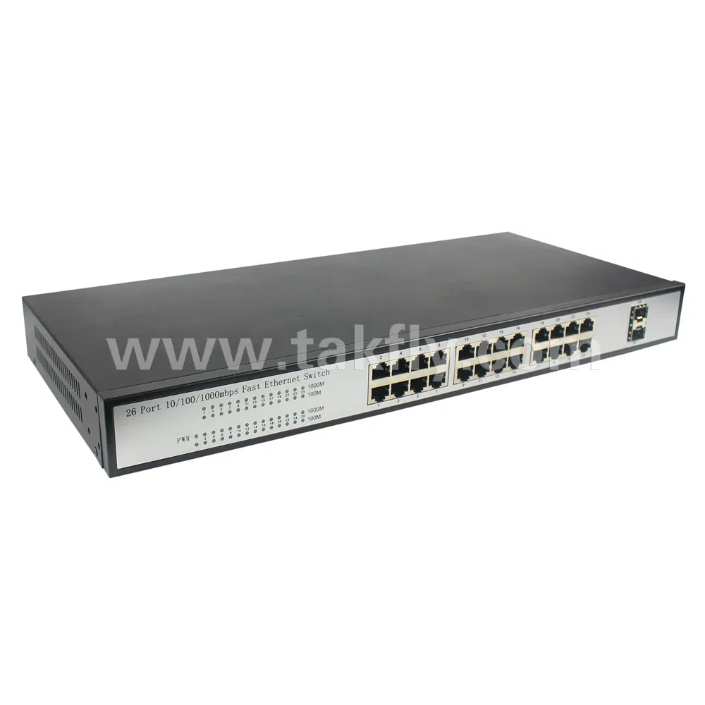10/100/1000M 2 SFP 24 port gigabit fiber optic ethernet switchProduct Description It is unmanaged pure gigabit Ethernet switch, we designed specially for work groups, internet bars, schools, small and medium enterprises, upgrade th......