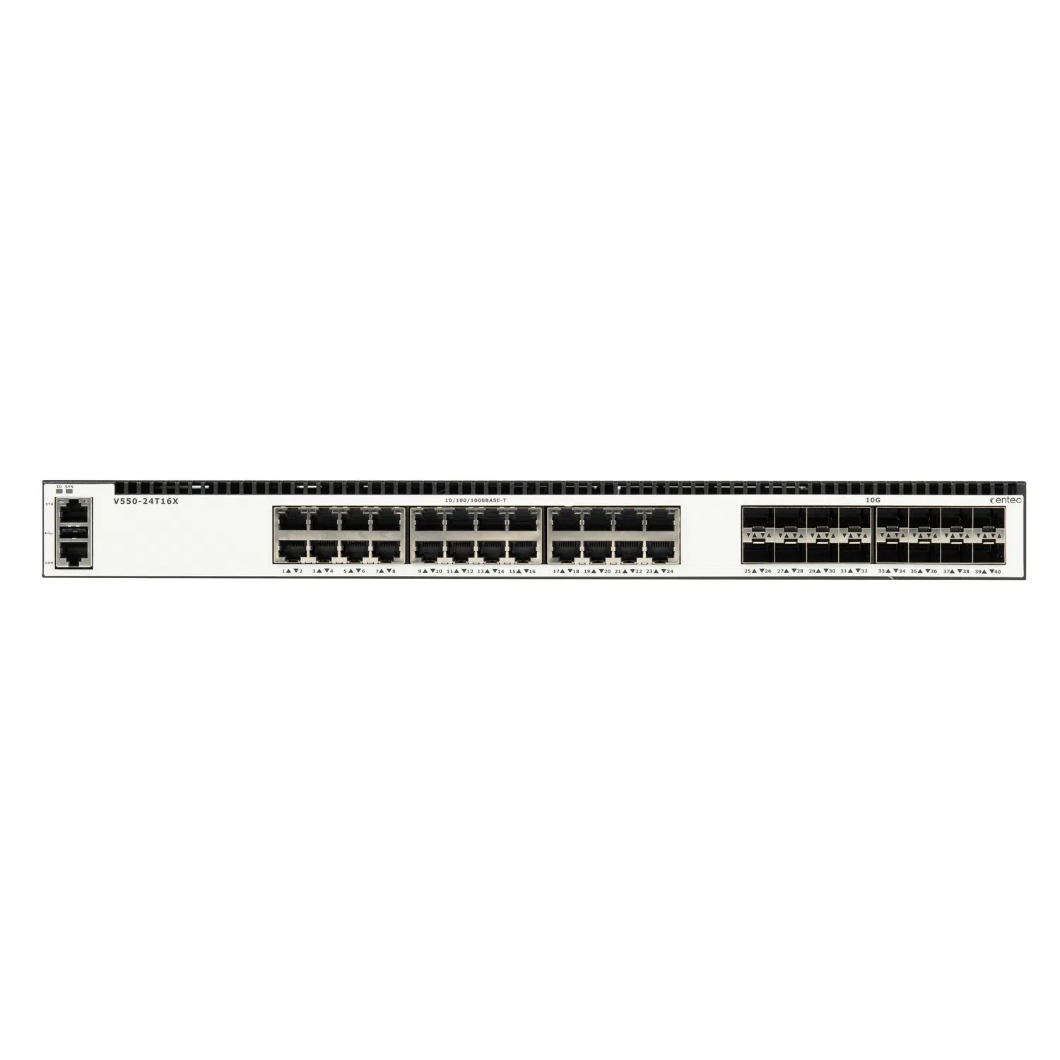 | E550-24T16X | · 24x10/100/1000 Base-T Ports · 16x10GE SFP+ Ports · Dual modular power supply |