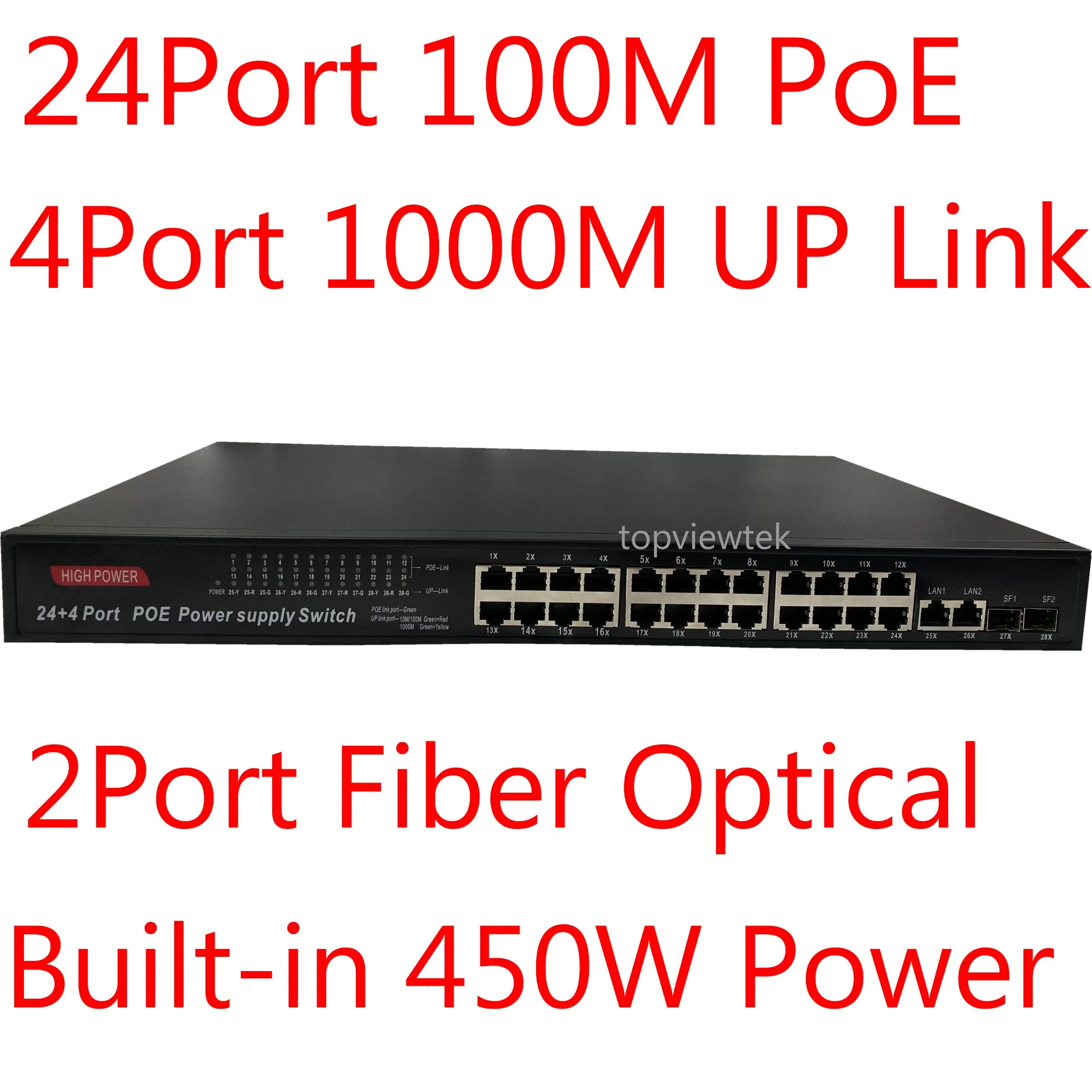 24 Port Unmanaged PoE Fast Ethernet CCTV Network Switch Built-in 450W Power SupplyFactory make different PoE Switch,we accept small order OEM,welcome inquiry!Description: The 24port unmanaged PoE switch with 2port 1000M Up Link and 2port SFP Uplink that requires no configuration and provides 24 PoE......