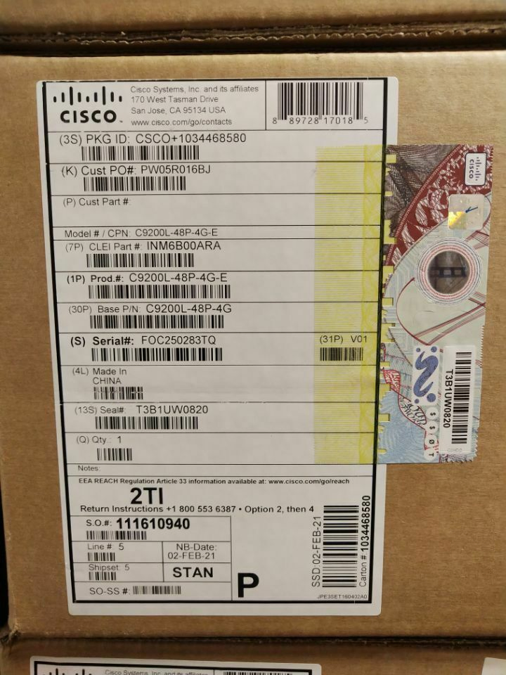 | Compatible Brand: | Cisco | MPN: | C9200L-48P-4G-E |