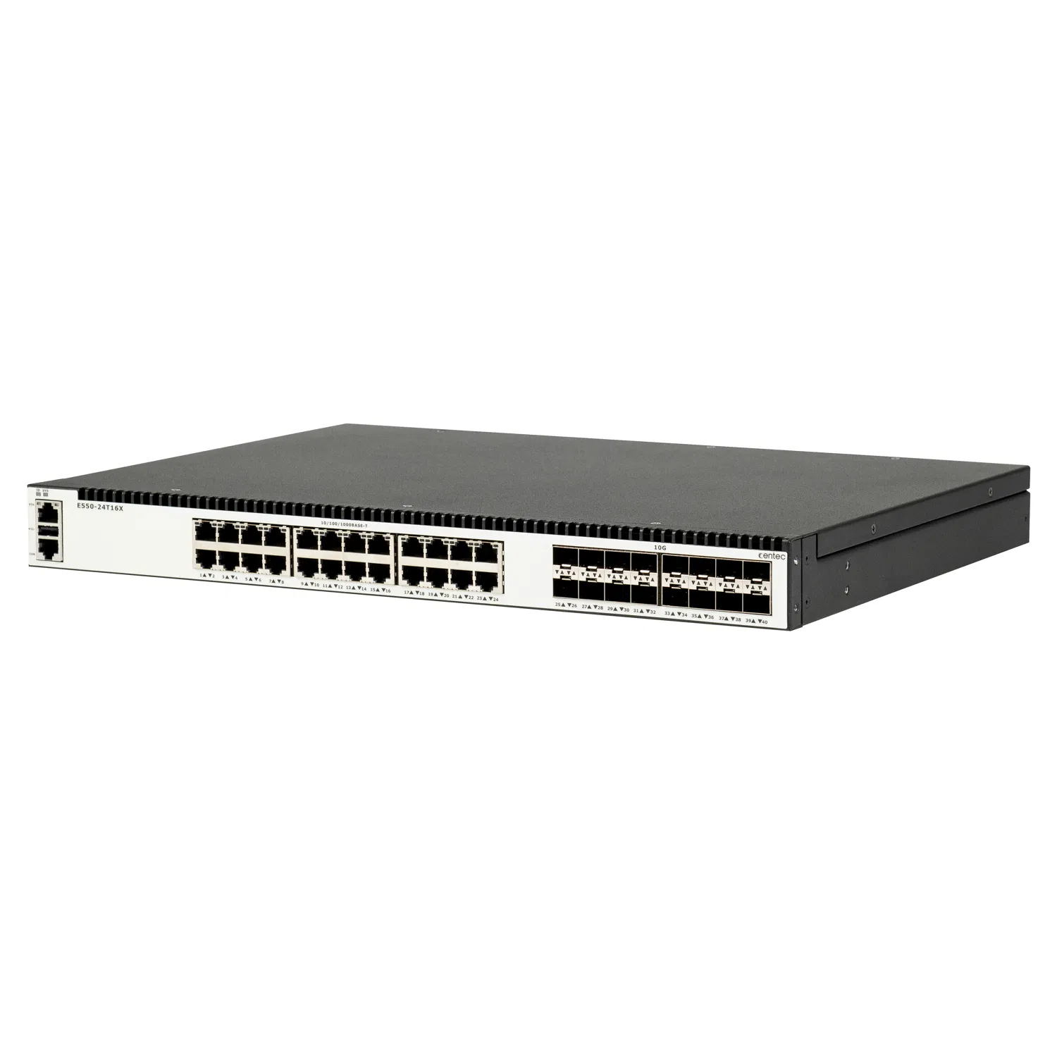 | E550-24T16X | · 24x10/100/1000 Base-T Ports · 16x10GE SFP+ Ports · Dual modular power supply |