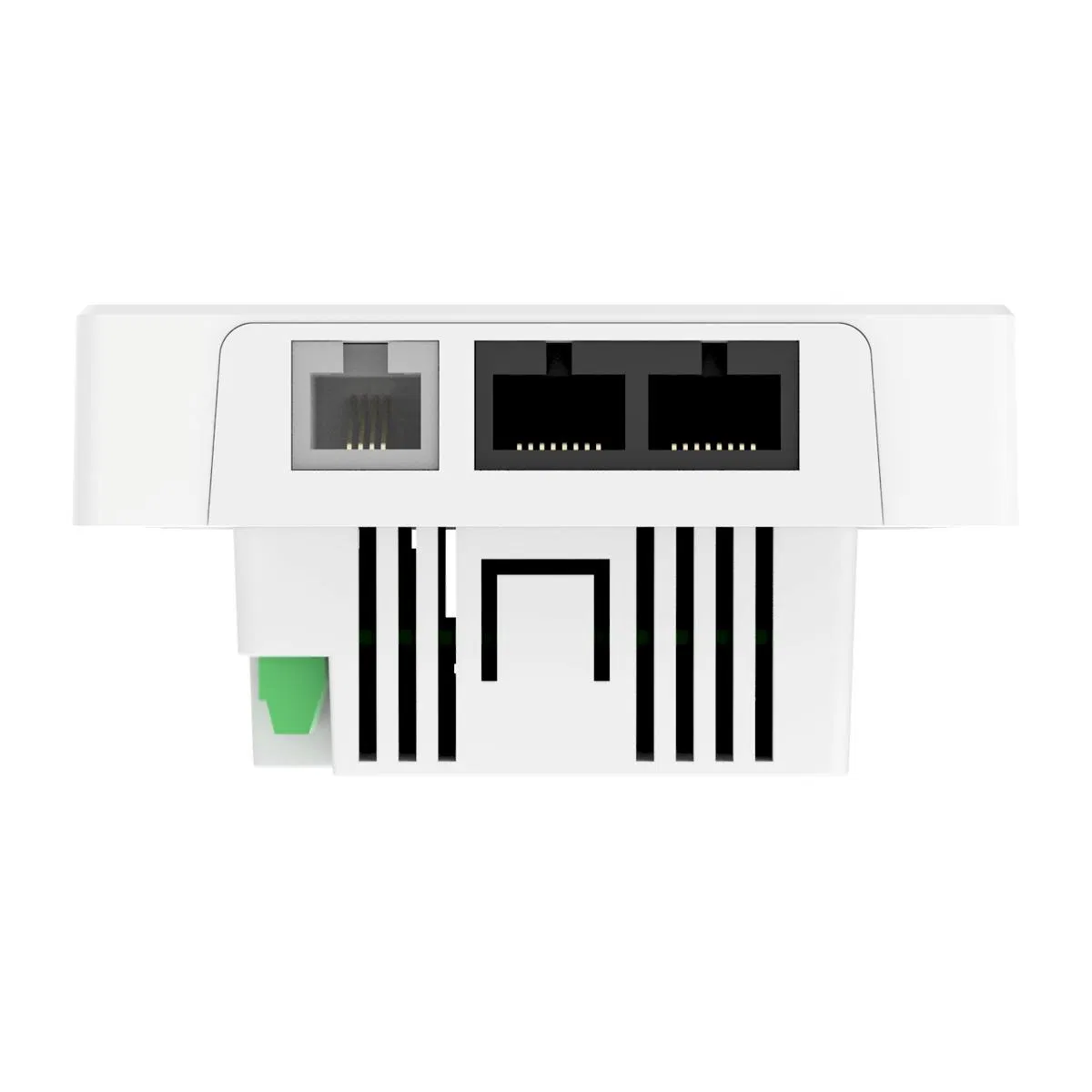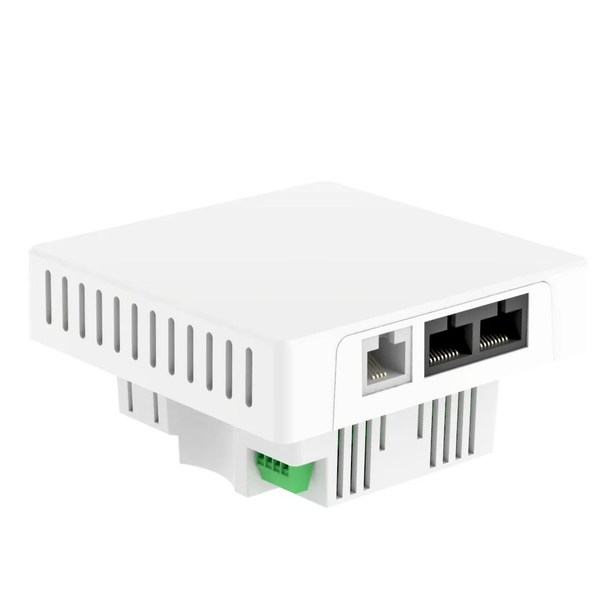 It is an in wall AP comply with IEEE 802.11b/g/n standard, with 300Mbps data rate with Qualcomm Chipset, with 3*RJ45 ports and 1*RJ11 port, designed for hotel/home mainly to provide Wi-Fi Internet access for users and LAN internet for TV/PC... in hotel room, guest room, living room and lobby.